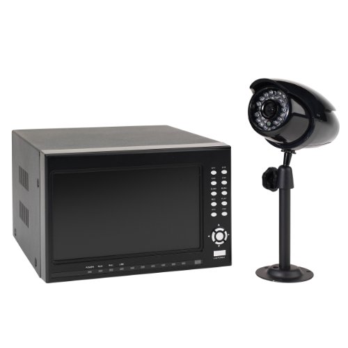 This First Alert 4 Channel DVR + Integrated 7" Monitor and 4 Wired Cameras has a 4 Channel LCD DVR includes 7" Quad-View Monitor with 4 Indoor/Outdoor Cameras, Night Vision up to 120 feet, Motion Activated and Scheduled Recordings, User-Friendly Navigation with Remote Control Included and has a USB Back-Up. Perfect for home or office. Key System Features: 4-Channel LCD DVR with Recording Scheduler. 7" Quad-View Monitor. 4 Indoor/Outdoor Motion Activated Cameras. Equipped with Night Vision. 50ft Cables Included. Remote Control Included. USB Input. Included in this security kit: 1 320GB M-JPEG DVR System, 4 Wired Indoor/Outdoor Cameras, 1 Power Supply (DVR, Cameras plug into DVR), 4 Camera Stands, 4 Mounting Kits, 4 60ft. BNC Cables, 1 Remote Control, 1 Mouse, 4 Camera Mounting Hardware, 1 Manual and 1 Installation CD. First Alert 4 Channel DVR + Integrated 7" Monitor and 4 Wired Cameras HS-4700-S