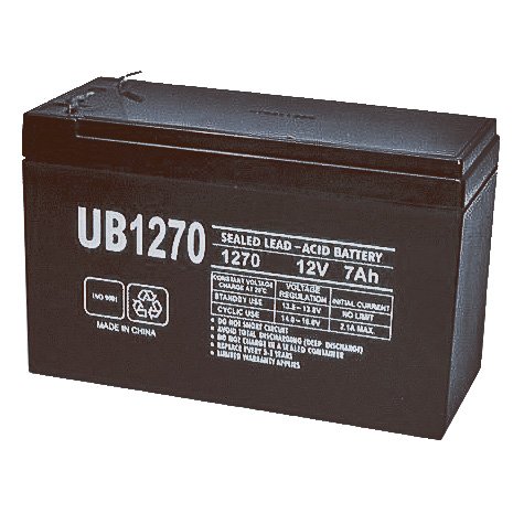 This environmentally friendly UPG sealed battery will not leak and can be used in any position, even upside down. Maintenance-free; never needs filling. Resists shock and vibration. Volts: 12, Amps: 7, Battery Weight (lbs.): 5, Application: gates, UPS, security, hunting, emergency lighting, Battery Chemistry: Sealed Lead Acid - Universal, Battery Type: AGM, Terminal Type: F1 (Faston tabs), Dimensions L x W x H (in.): 5 15/16 x 2 9/16 x 3 15/16, Model: UB1270